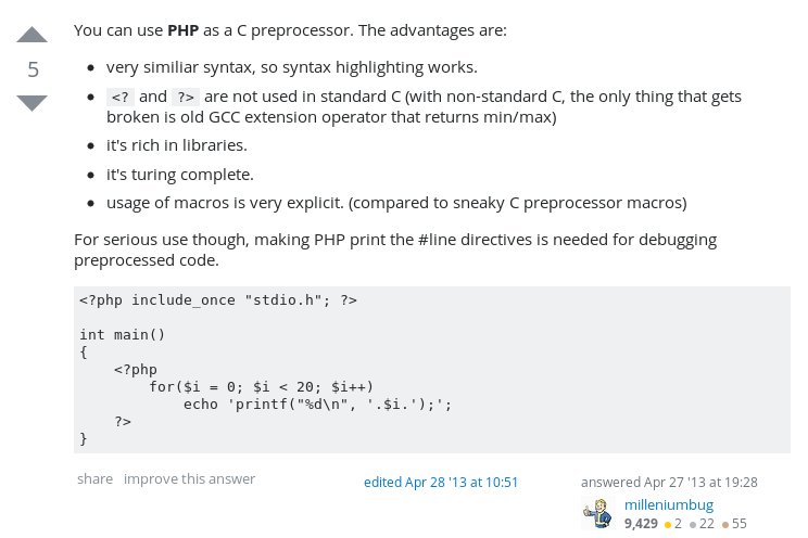 Цитата JoeUser @ Да, да. Просто надо поставить весь софт из интернета сразу вместе с системой - и всё будет работать. Наверное. Если не забывать где там питон, где руби, а где Си с препроцессами на PHP. Юникс-вэй, согласен. Но спасибо - уж лучше детский сад. Тем не менее, наличие в системе Перла, Руби, Питона, практически с момента старта *nix системы Добавлено Жаль только что если вам уж так приспичил руби, то под виндами внезапно он тоже есть. Только вот винда вполне нормально и без него может работать. |